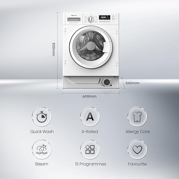 Discover the best washing performance for homes across the United Kingdom with the Hisense 3 Series 7KG Integrated Washing Machine.