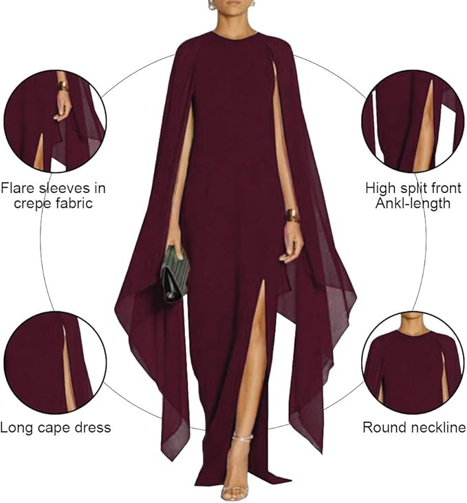 Step into timeless elegance with the MAYFASEY Women’s High Split Evening Dress – the perfect choice for glamorous events and special occasions in the United Kingdom. Crafted from soft, stretchy 100% polyester, this long formal gown features a sophisticated high neck, flowing cape sleeves, and a daring high slit that adds a touch of modern allure.
