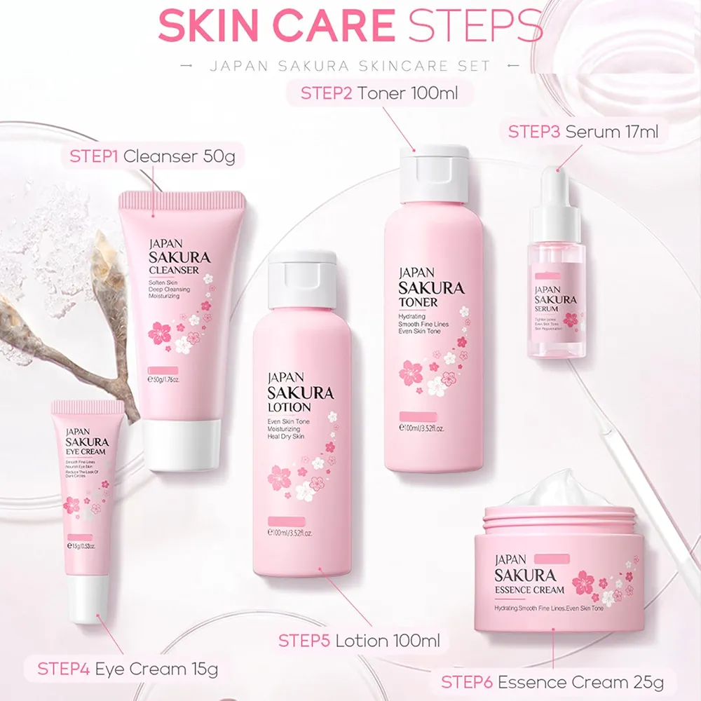 🌸 Gentle & Nourishing: Infused with cherry blossom extract, vitamins, and other mild ingredients, this set penetrates deeply to provide long-lasting hydration and softness, leaving skin smooth, refreshed, and radiant.