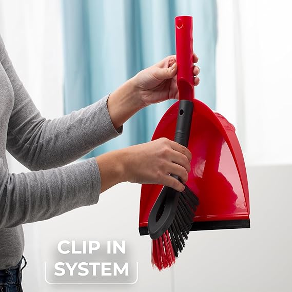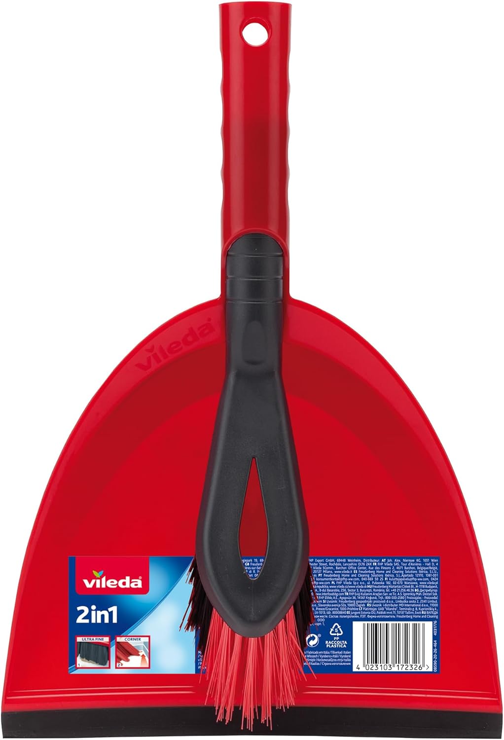 Keep your home spotless effortlessly with the Vileda Dustpan and Brush Set in vibrant red. This complete 2-in-1 cleaning set includes a durable brush and a wide dustpan with a rubber lip, ensuring every sweep collects dust and debris efficiently. The brush combines ultra-fine fibres for capturing the smallest particles and firmer bristles for reaching corners and edges with precision.