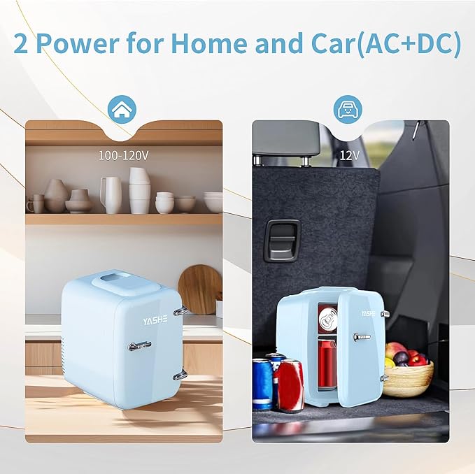 Keep your drinks, snacks, skincare products, and more at the perfect temperature with the YASHE Mini Fridge – one of the best compact fridges for homes, offices, and cars in the United Kingdom. With a 4-liter capacity that holds up to 6 cans, this portable fridge features cooling and thermostatic control to reduce temperatures 32-40°F below ambient or keep items warm up to 150°F, meeting all your storage needs.