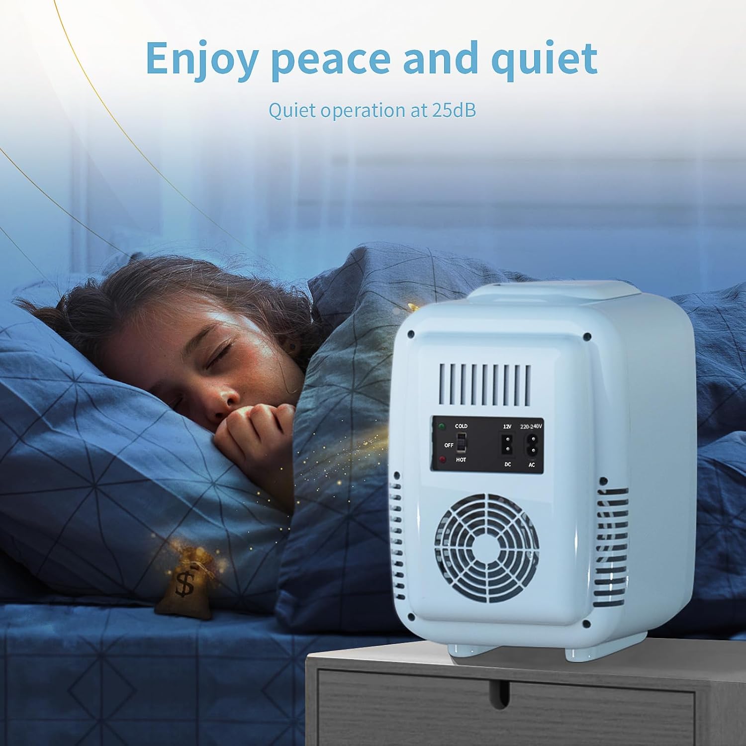 Equipped with AC & DC power options, it can be used at home or in your car. Its quiet operation ensures it won’t disturb work or rest, while the compact, freestanding, frost-free design makes it ideal for bedrooms, offices, dorms, or vehicles in the United Kingdom. Stylish, portable, and highly functional, this mini fridge combines convenience, premium quality, and versatility for UK households and professionals.